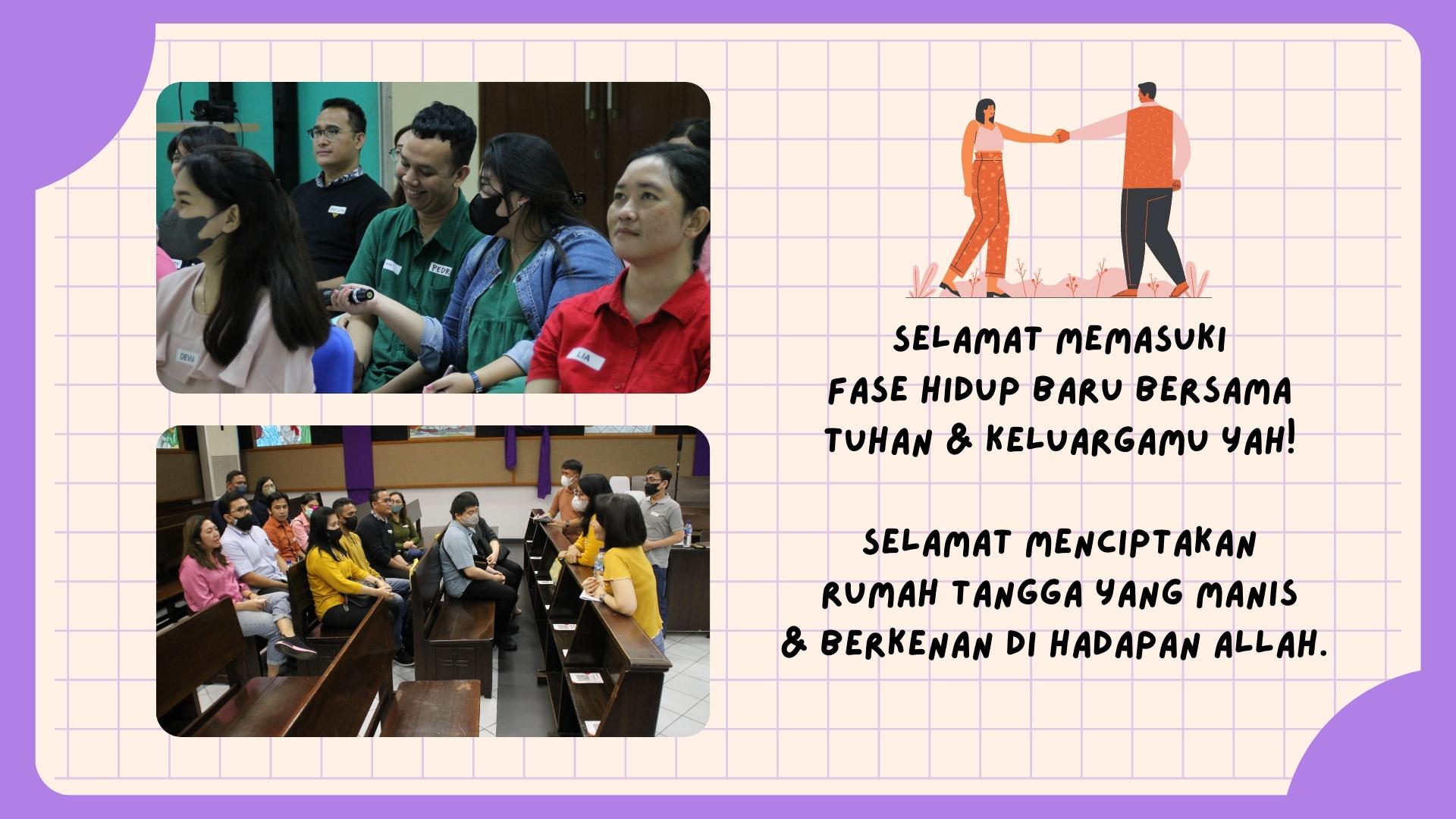 Semoga seluruh rangkaian materi dan acara yang diberikan diharapkan dapat memperlengkapi para calon pasangan suami istri ini dengan pengetahuan dan keterampilan yang dibutuhkan untuk lebih siap dalam memasuki jenjang hidup pernikahan. Tuhan Yesus memberkati!