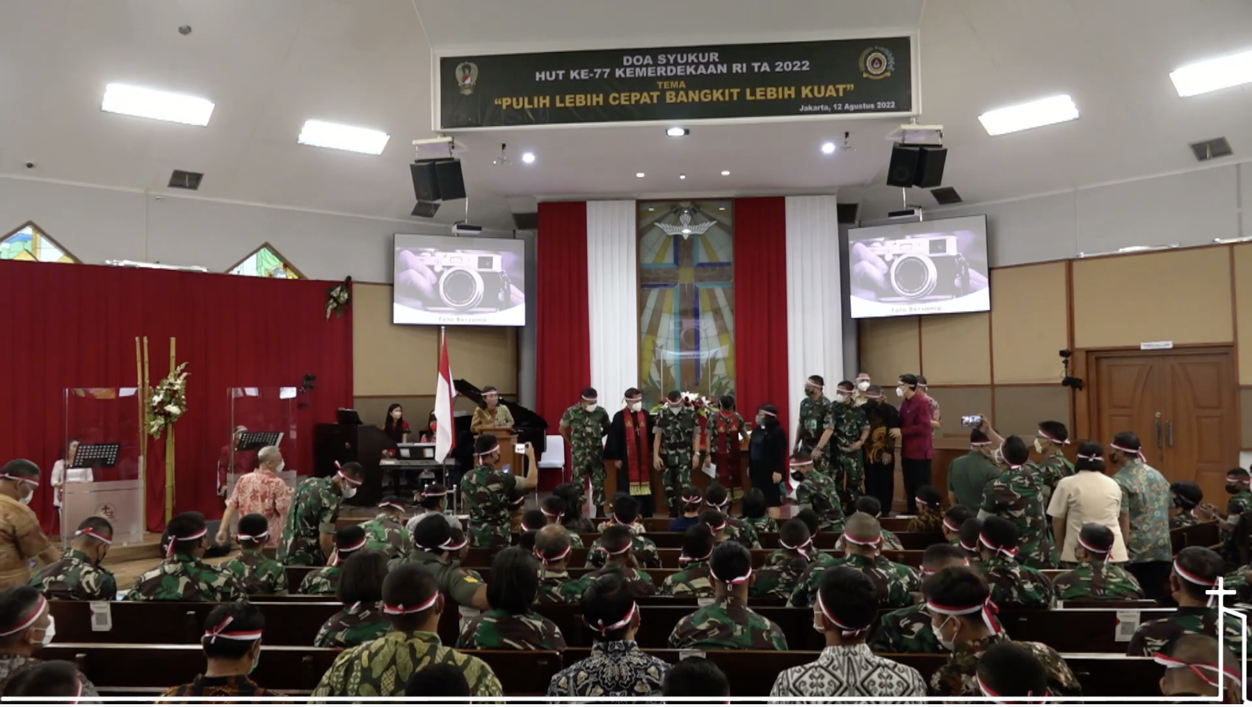 Kebaktian yang dihadiri 300 umat Tuhan dari TNI AD se-Jabotabek berlangsung hikmat dan penuh keceriaan. Tema yang diusung adalah “PULIH LEBIH CEPAT, BANGKIT LEBIH KUAT”. Firman Tuhan dilayankan oleh Pdt. Darwin Darmawan, sedangkan liturgos oleh Pdt. (Letkol) Tiara.