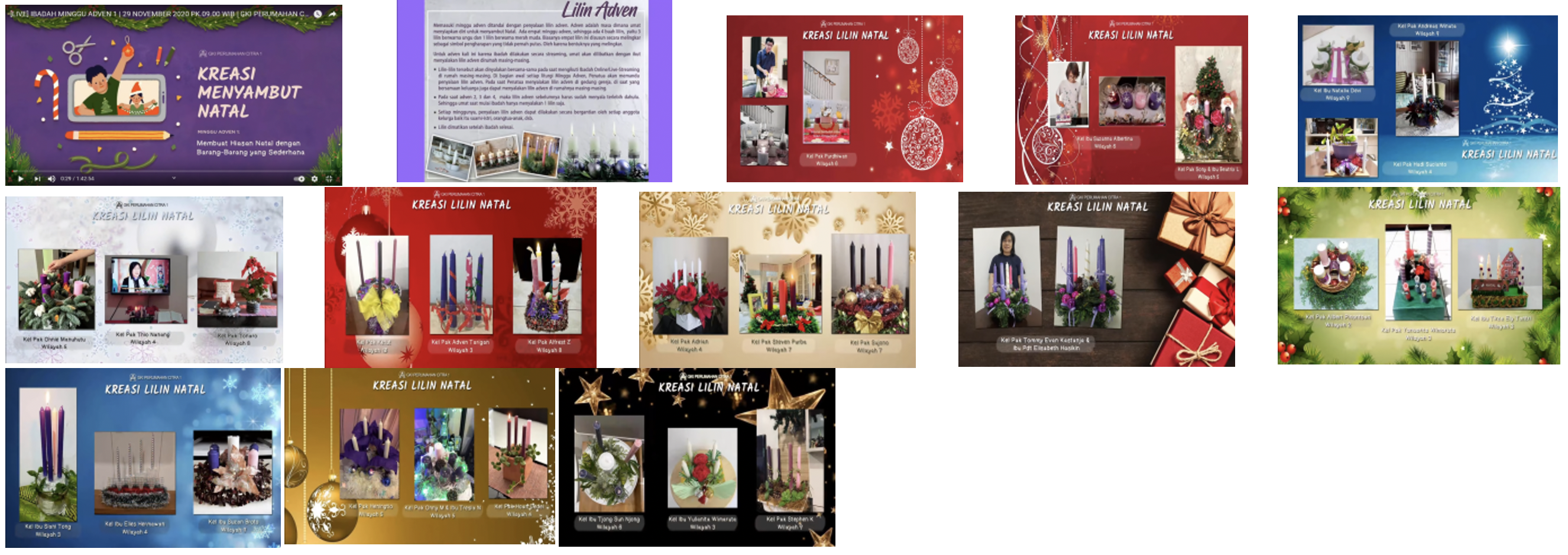 Sepanjang minggu adven tersebut, panitia selalu berkomunikasi dengan umat melalui berbagai kegiatan dan persiapan Natal, antara lain: membuat pernak-pernik kreasi natal, mendekor lilin Adven dan lilin Natal, serta menyajikan contoh Hidangan Natal. Respons umat sangat baik. Masing-masing keluarga ikut berpartisipasi di dalamnya. Semua disampaikan secara daring. Kegiatan-kegiatan sederhana ini dapat membantu umat untuk lebih mempersiapkan Natal walaupun umat hanya beraktivitas dari rumah. Kegiatan membagikan hasil kreasi dalam group WA dapat saling memberi motivasi dan semangat antar umat.