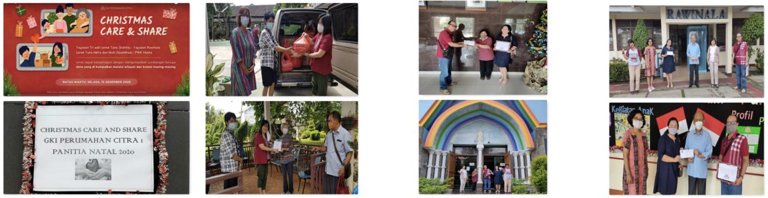 Sungguh luar biasa kasih Tuhan yang diwujudnyatakan melalui partisipasi umat (melalui 10 wilayah dan 4 Komisi) dalam pengumpulan dana sehingga bisa tercapai sejumlah Rp172.912.111,00. Hal ini sungguh merupakan sukacita bagi kita semua karena Tuhan, melalui umat-Nya, dapat berbagi bersama orang lain yang sangat membutuhkan. Salah satu bagian yang mengharukan, yakni pada saat panitia menyempatkan diri mengunjungi Panti dan Yayasan tersebut. Mereka menerima dengan penuh sukacita karena pada masa yang sulit ini, umat GKI Citra 1 mau memperhatikan mereka dan mau berbagi kasih.