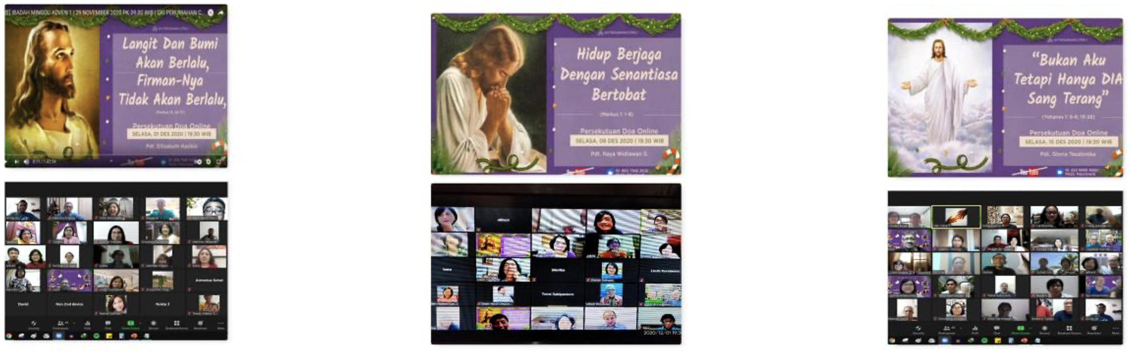 Selain dari beberapa kegiatan yang sudah disebutkan di atas, panitia bekerja sama dengan Komisi Dewasa mengadakan kegiatan Persekutuan Doa online selama tiga kali setiap Selasa, yakni pada tanggal 1, 8, dan 15 Desember 2020 dengan format persekutuan secara diskusi kelompok (breakout room) dan tidak bisa diakses melalui kanal Youtube. Sangat luar biasa respons dari umat yang ikut serta pada PD online tersebut sekalipun melalui Zoom Meeting. Diharapkan agar kegiatan serupa dapat terus dilanjutkan pada waktu-waktu yang akan datang.