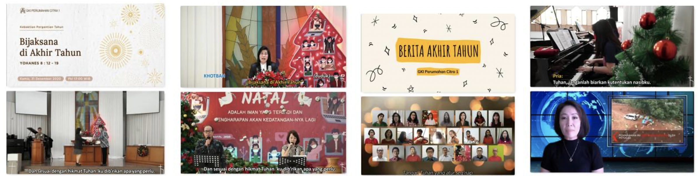 Pada kebaktian tersebut, panitia menayangkan perjalanan kehidupan umat GKI Perumahan Citra 1, berupa “Berita Akhir Tahun”. Panitia juga berkesempatan mengisi pujian setelah khotbah. Mengahiri tahun 2020, Ketua Panitia menyampaikan pesan dan kesan serta harapan dalam menghadapi tahun 2021.