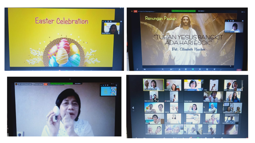 Komisi Usinda GKI Perumahan Citra 1 telah melaksanakan ibadah Paskah Usinda online pada Jumat, 09 April 2021 dengan tema “Tuhan Yesus Bangkit, Ada Hari Esok”, dilayankan oleh Pdt. Ellisabeth Hasikin, dengan menggunakan sarana Zoom dan Youtube.